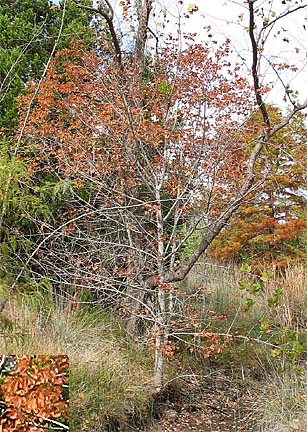 The valley of upper Deadman's Creek in N. Hays County has both green ash/red ash (Fraxinus pensylvanica) and Texas (white) ash (F. albicans), and it would seem that hybridization has occurred. They grow along the creek or in bottomland areas that have strong seasonal moisture. 30 years ago the overgrazed land had three very large trees (trunks c. 2' in diameter) and a few saplings. One collapsed some 15 years ago, one large F. albicans (male [staminate]) is still present, and one, F. pensylvanica, has been reduced to a low trunk with a few smaller branches. But the saplings have become trees of moderate size (c. 25-30'), and many new saplings have appeared along the creek.