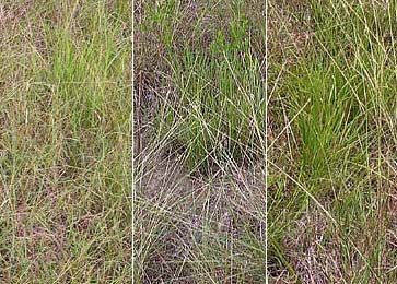 I have not attempted to reduce KR, given that burning and mowing only create dense stands. But the recent spread of little bluestem in KR areas led me to suspect that one way to speed along the process might be to introduce little bluestem into areas of dense KR. To test this, in the fall of 2003 I did just this in 3 small plots. As of 2007 these plots appear to have held their own in spite of the 2006 drought, and will bloom for the first time. As the plants mature I hope to see some spread into surrounding KR.
