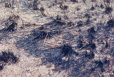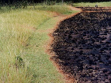 | Burn edges on west and south defined by mown paths, July 27, 1988 | |